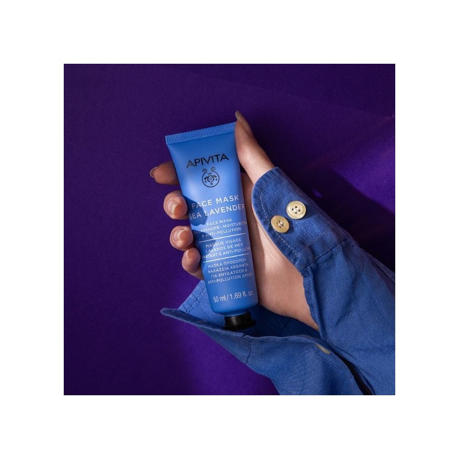 La Mascarilla de Lavanda de Mar de Apivita es el "detox" que tu piel necesita para respirar de nuevo. Conocida como la "Siempreviva Azul", esta planta costera ofrece una potente defensa contra los radicales libres y la contaminación urbana, principales causantes del envejecimiento prematuro y el tono apagado.