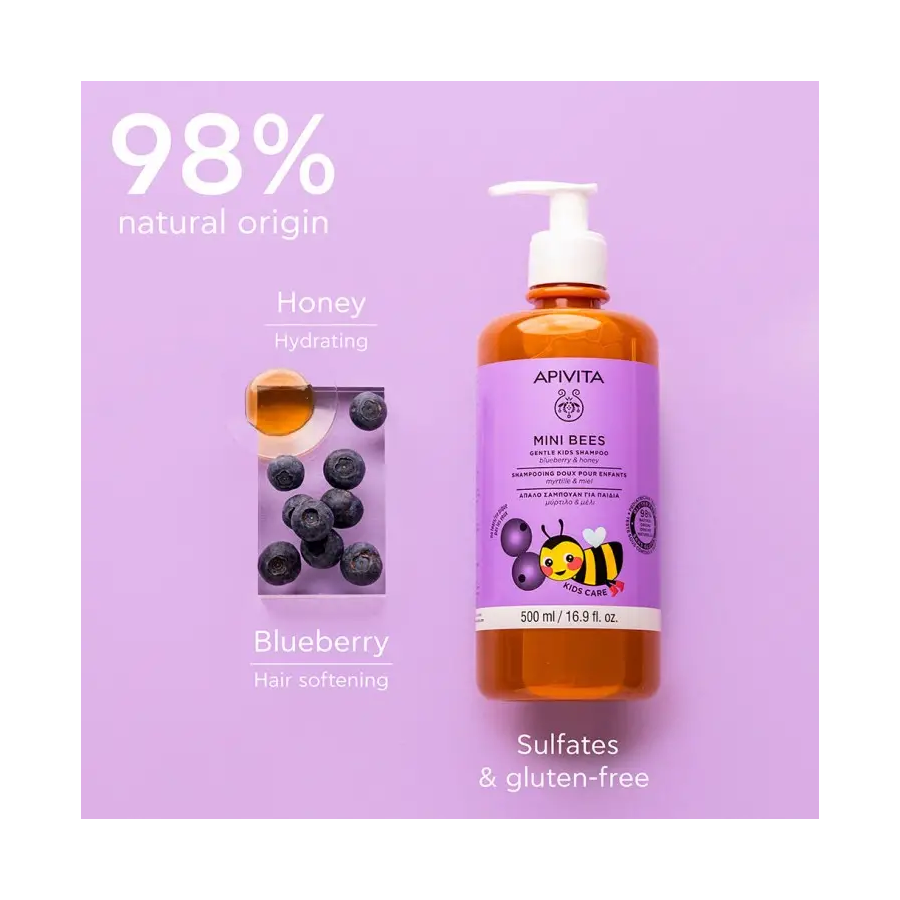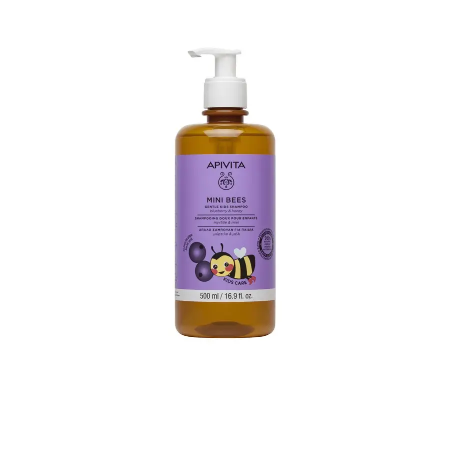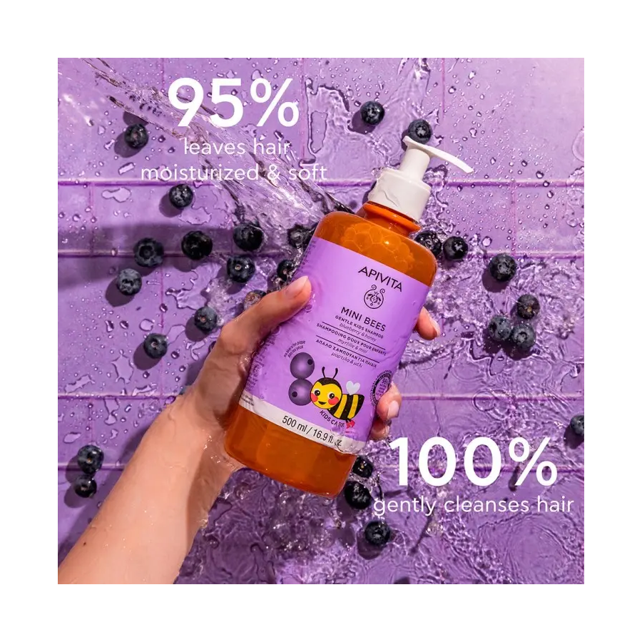 APIVITA MINI BEES · Champú Suave para Niños Arándano & Miel – 98% Natural..
