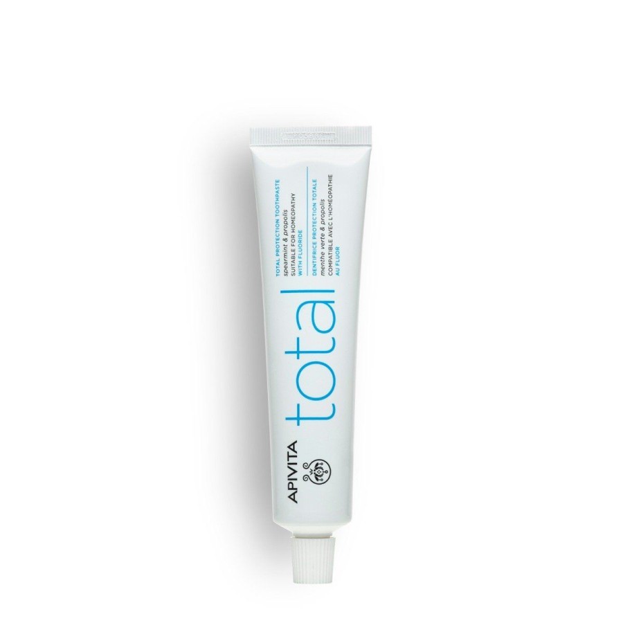 La Pasta Protección Total de Apivita es el "escudo diario" para mantener tu boca sana y fuerte. Formulada para prevenir los problemas bucales más comunes (caries, gingivitis, placa), ofrece una limpieza profunda pero extremadamente suave, respetando el equilibrio de la flora bucal gracias a la ausencia de sulfatos agresivos.