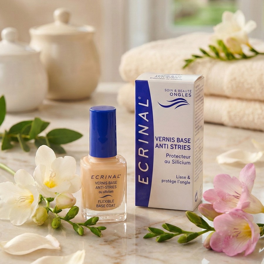 El Esmalte Base Antiestrías ECRINAL® protege y alisa la uña con ingredientes naturales.