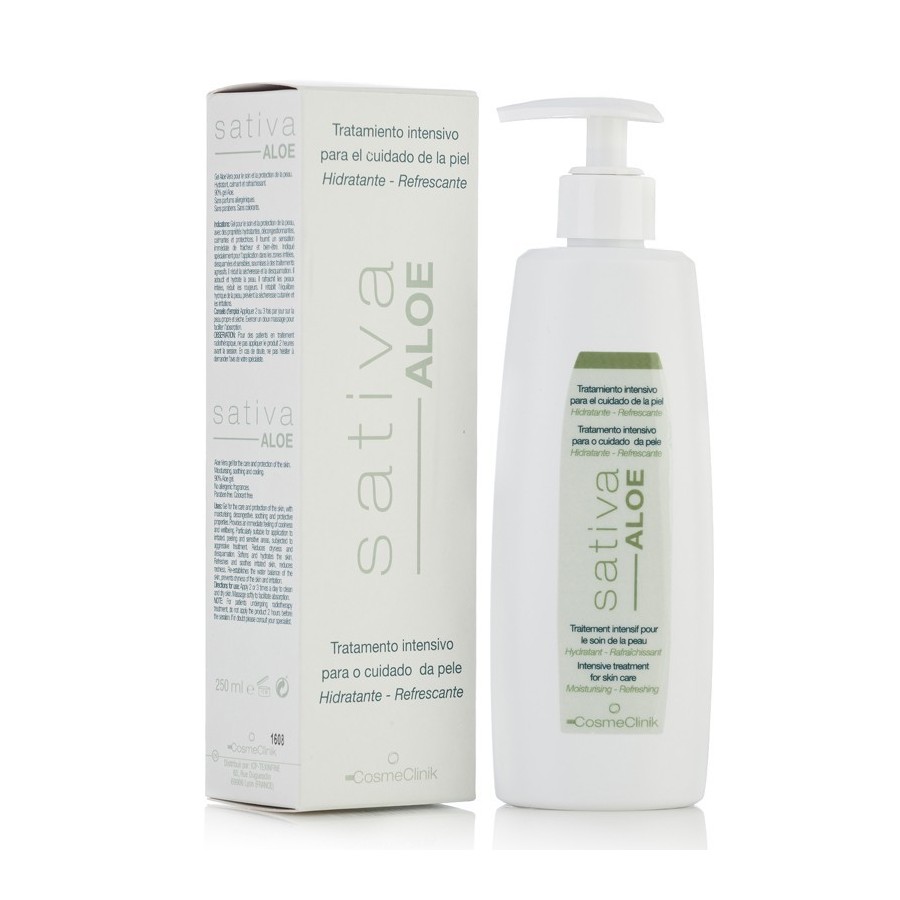 Sativa Aloe es un gel de Aloe Vera puro (90%) especialmente formulado para el cuidado y protección de la piel sensible, irritada o sometida a agresiones externas. Su fórmula combina Aloe Vera y Avena Sativa, ofreciendo:
