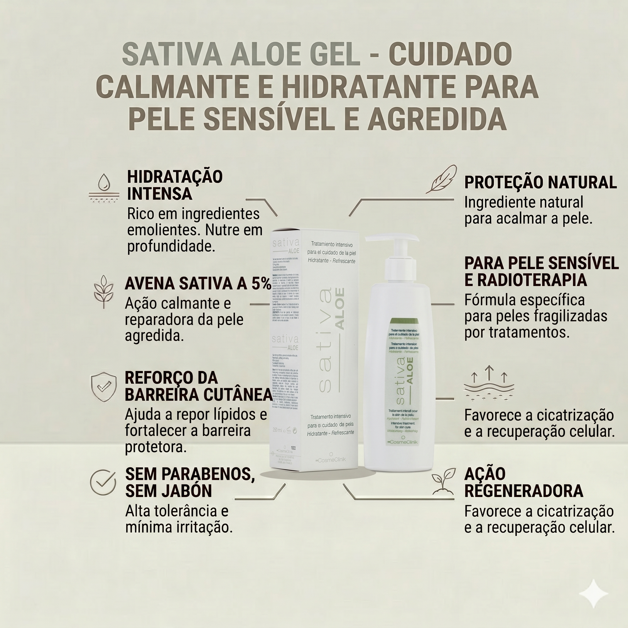 Gel de Aloe Vera 90% y Avena Sativa (Sativa Aloe) - Cosmeclinik