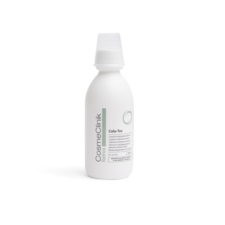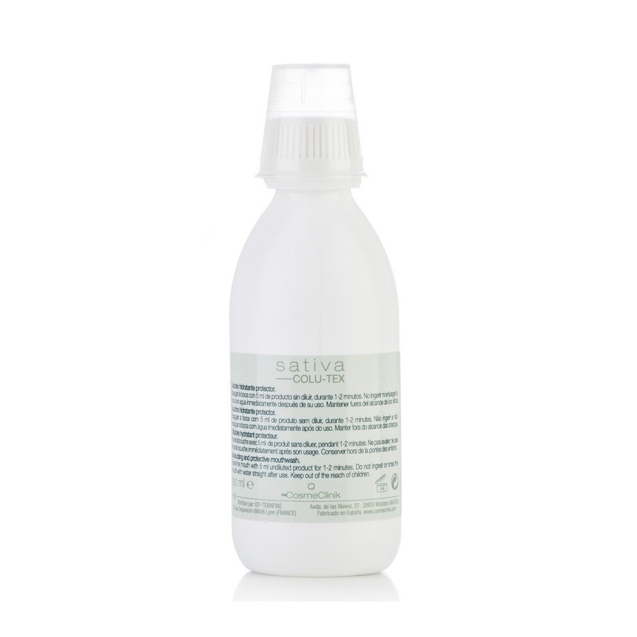 Sativa Colu-Tex es un colutorio avanzado diseñado para aliviar la boca seca y proteger la mucosa oral. Su fórmula innovadora combina activos hidratantes, calmantes y protectores que: