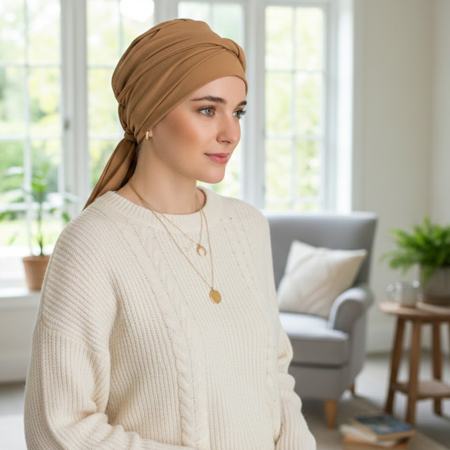Muchas mujeres renuncian a los pañuelos porque son difíciles de colocar o se sienten inseguras si se deshace el nudo. El modelo Smooth elimina ese estrés. Al tener una base de gorro cerrada, tu cuero cabelludo siempre está protegido y cubierto, independientemente de cómo hagas el nudo. Las cintas largas permiten jugar con el estilo: puedes hacer una lazada grande, un nudo bajo tipo "moño", o enrollarlas alrededor de la cabeza para crear una corona de volumen.