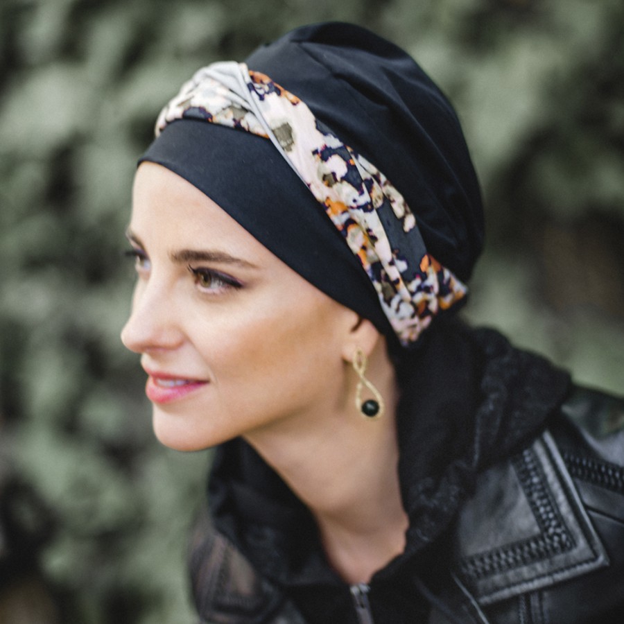 El turbante Elegance Night Flora de Carebell Headwear ha sido diseñado especialmente para mujeres que enfrentan tratamientos oncológicos o sufren de alopecia, combinando funcionalidad, suavidad y diseño favorecedor.