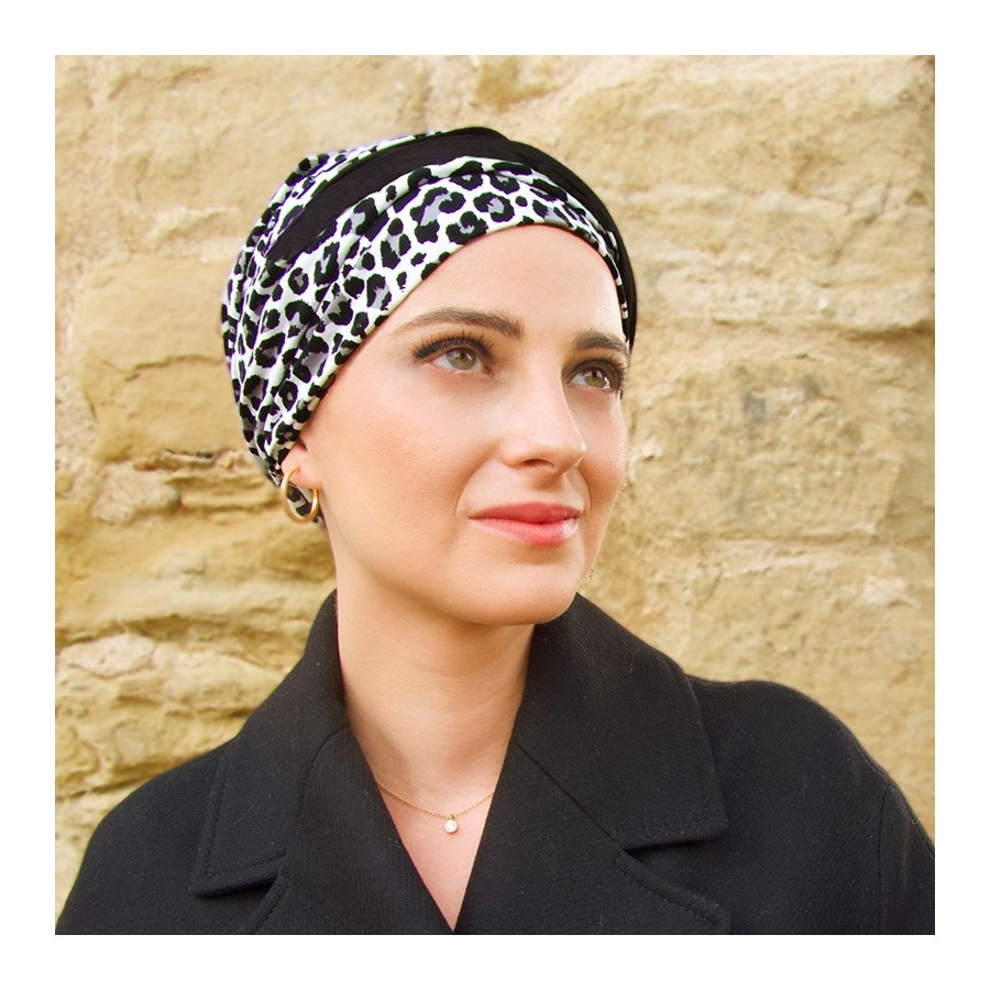 Pañuelo oncológico Confort Leopard de la colección Carebell Headwear Otoño · Invierno.