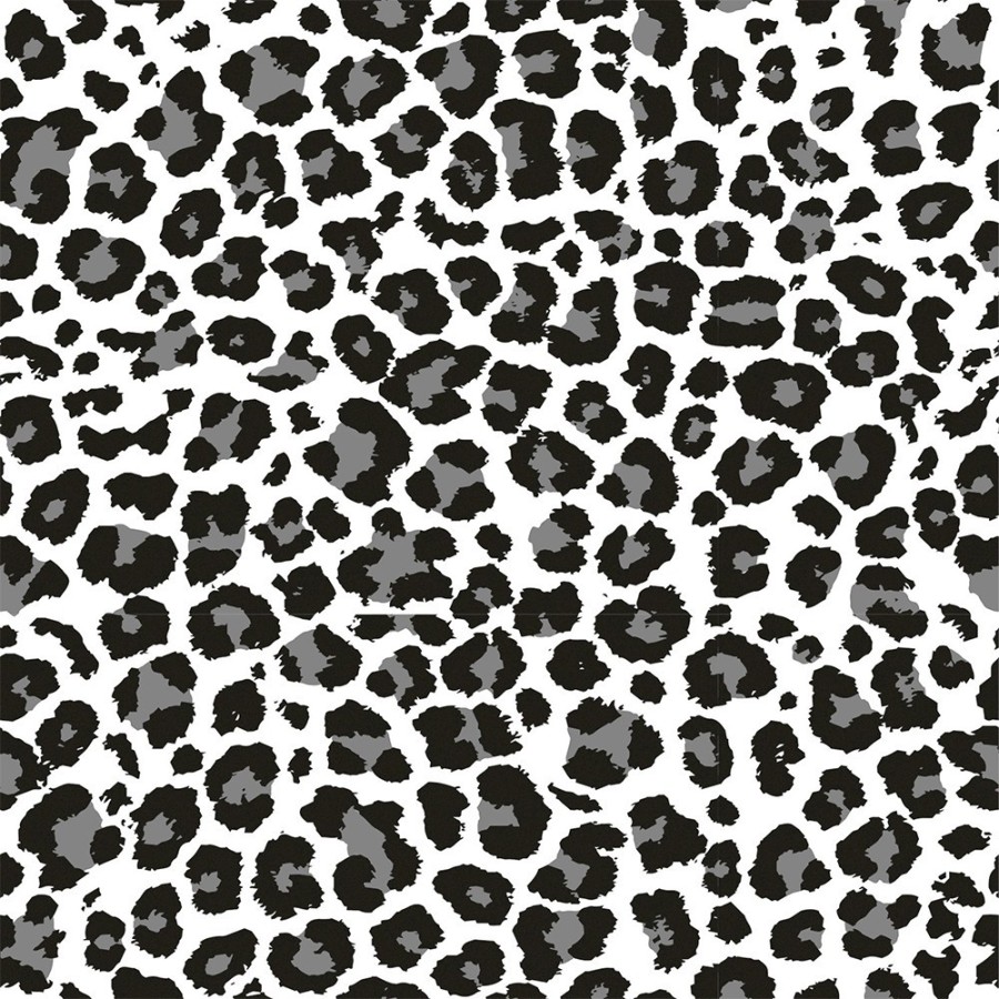 La base combina un estampado de leopardo blanco, gris y negro con un lado de la cinta de algodón negro.