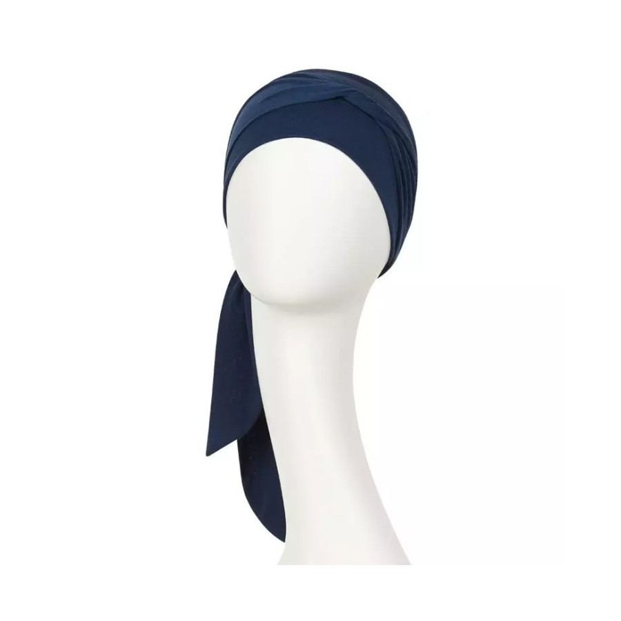 El modelo Beatrice de House of Christine Headwear es la elección ideal para mujeres que buscan un pañuelo oncológico dinámico. A diferencia de los turbantes fijos, sus cintas largas te permiten jugar con el estilo y, lo más importante, ajustar el volumen según tus preferencias.