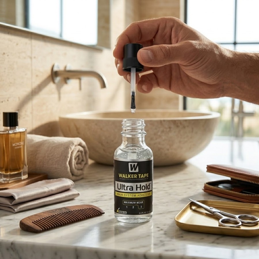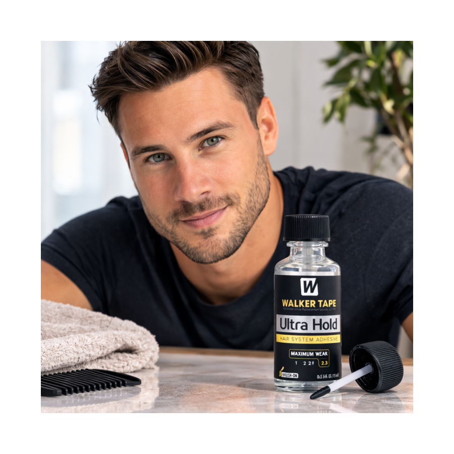 Walker Tape lidera la industria de la posticería ofreciendo soluciones de grado profesional. El Adhesivo Líquido Ultra Hold es su producto estrella en la categoría de líquidos, desarrollado específicamente para aquellos usuarios de prótesis capilares que requieren un anclaje a prueba de todo y no desean preocuparse por el mantenimiento de su pieza durante semanas.