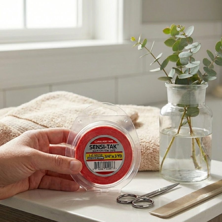 La Cinta Adhesiva Sensi-Tak (Rollo Rojo) de Walker Tape es la solución de fijación más segura y suave para cueros cabelludos sensibles, reactivos o sometidos a tratamientos oncológicos. Conocida mundialmente en el sector de la posticería como "el adhesivo rojo", esta cinta de doble cara de grado médico destaca por su formulación hipoalergénica y su bajísimo nivel de residuos. Ofrece una fijación de uso diario, asegurando tu peluca o prótesis capilar sin asfixiar la piel y permitiendo una retirada rápida, limpia y completamente indolora.