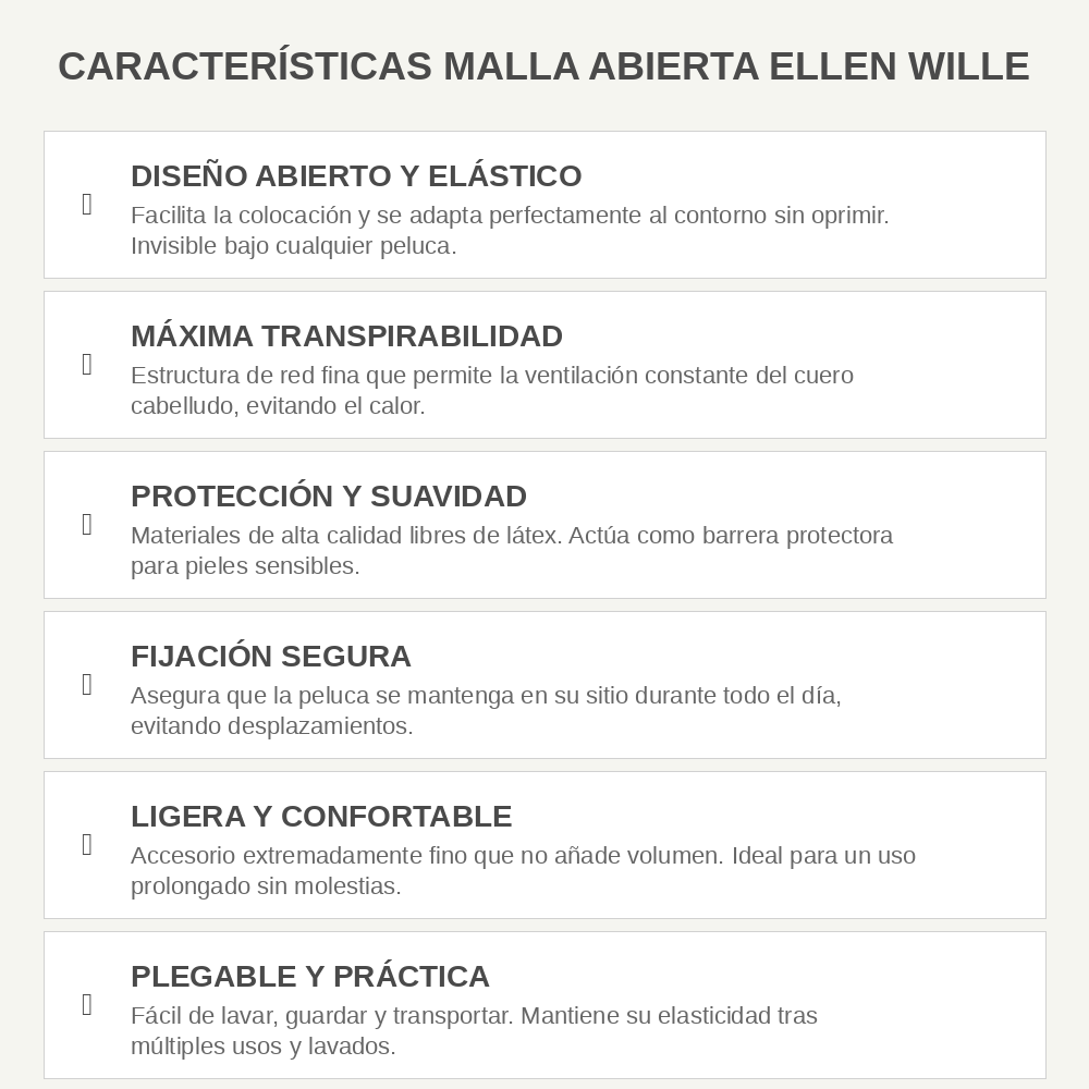 Malla Abierta para Peluca · Máximo Confort y Sujeción · Ellen Wille